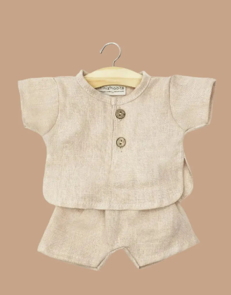 Andrea short set in washed linen for Minikane Gordis dolls and babies 13in & 14in.