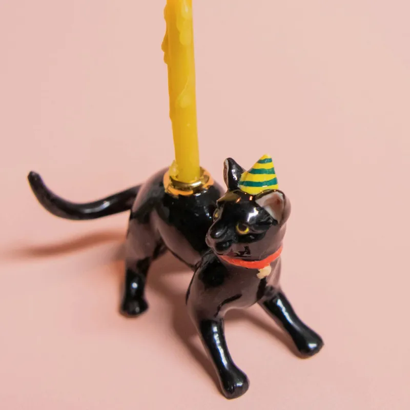 The Black Cat Cake Topper adds a playful touch to any celebration. This topper features a beautifully crafted black cat wearing a festive party hat and sitting next to a lit candle. Made from high-quality, food-safe materials, it ensures both safety and durability. Perfect for birthdays, cat-themed parties, and special occasions, its intricate design and lifelike details make it a delightful keepsake. Enhance your cake with this charming and unique topper.