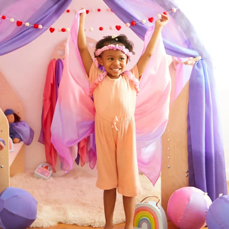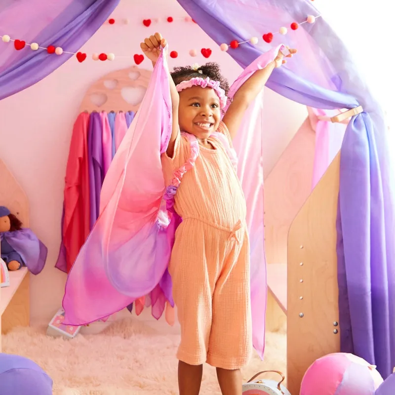 - Open-ended play with dress-up allows children to express their imagination and supports their independence.
