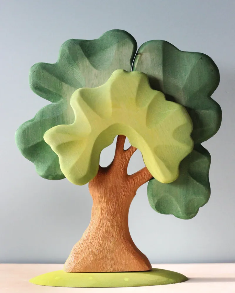 Handmade from linden wood and painted with non-toxic paint, these large trees are connected with wooden pegs and can be disassembled and reassembled easily.