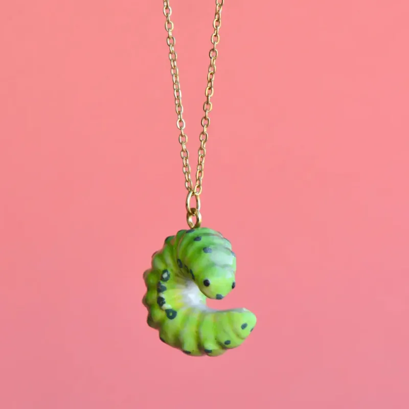 Discover the joy of life’s little moments with our Caterpillar Necklace. This hand-painted porcelain pendant captures the caterpillar in a playful wiggle, as if freshly plucked from a garden leaf. It serves as a reminder to savor each day and the early stages of life’s grand cycle. Due to the handmade nature of this product, slight variations in color and design may occur, making each piece truly one-of-a-kind. Perfect for those who find beauty in life’s simple pleasures.
