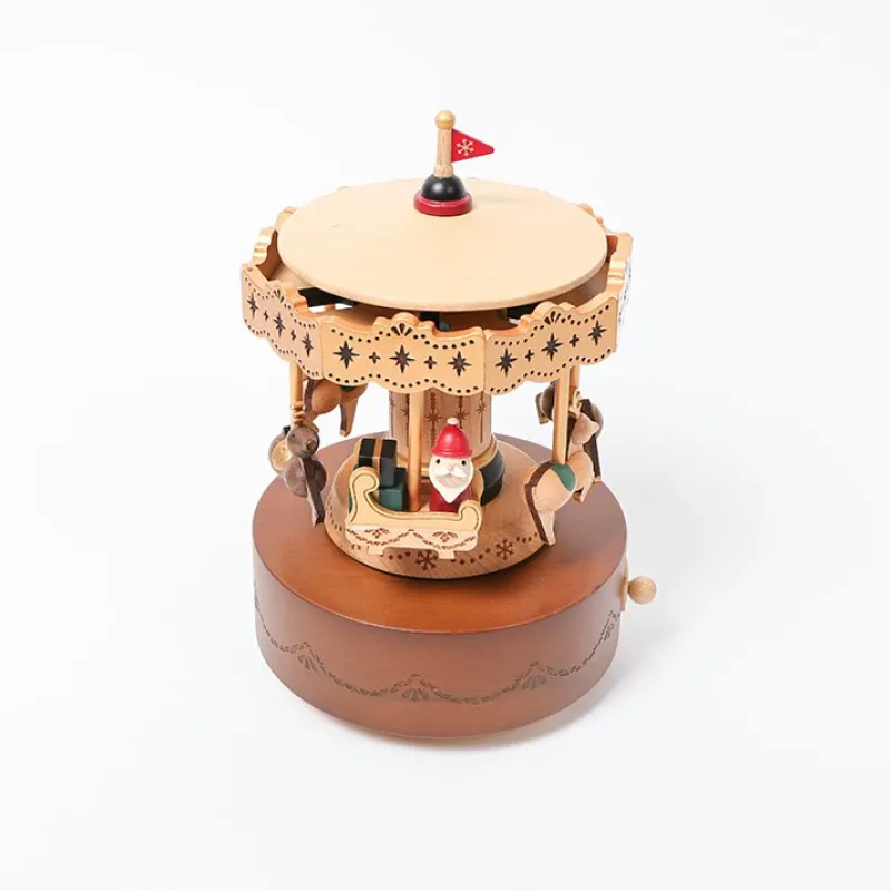 Combining nostalgia and a classic design, this hand cranked music box makes a great addition to any any room as a decoration on a shelf. The on/off toggle allows the music to start and turn off easily, while wind-up mechanism rotes the music box around.