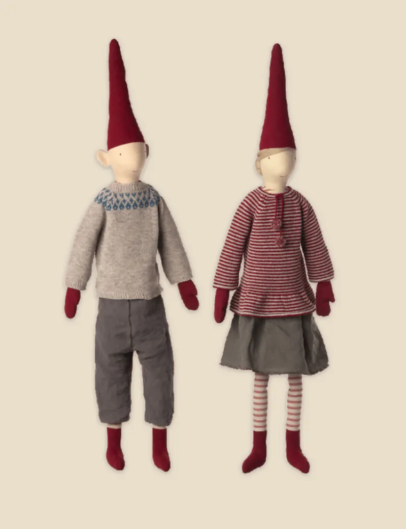 Mega pixy – a collection of different styles all dressed up in beautiful Christmas clothes made of exclusive materials. They are adorable for any Christmas decoration and can be mixed and matched across sizes and collections.