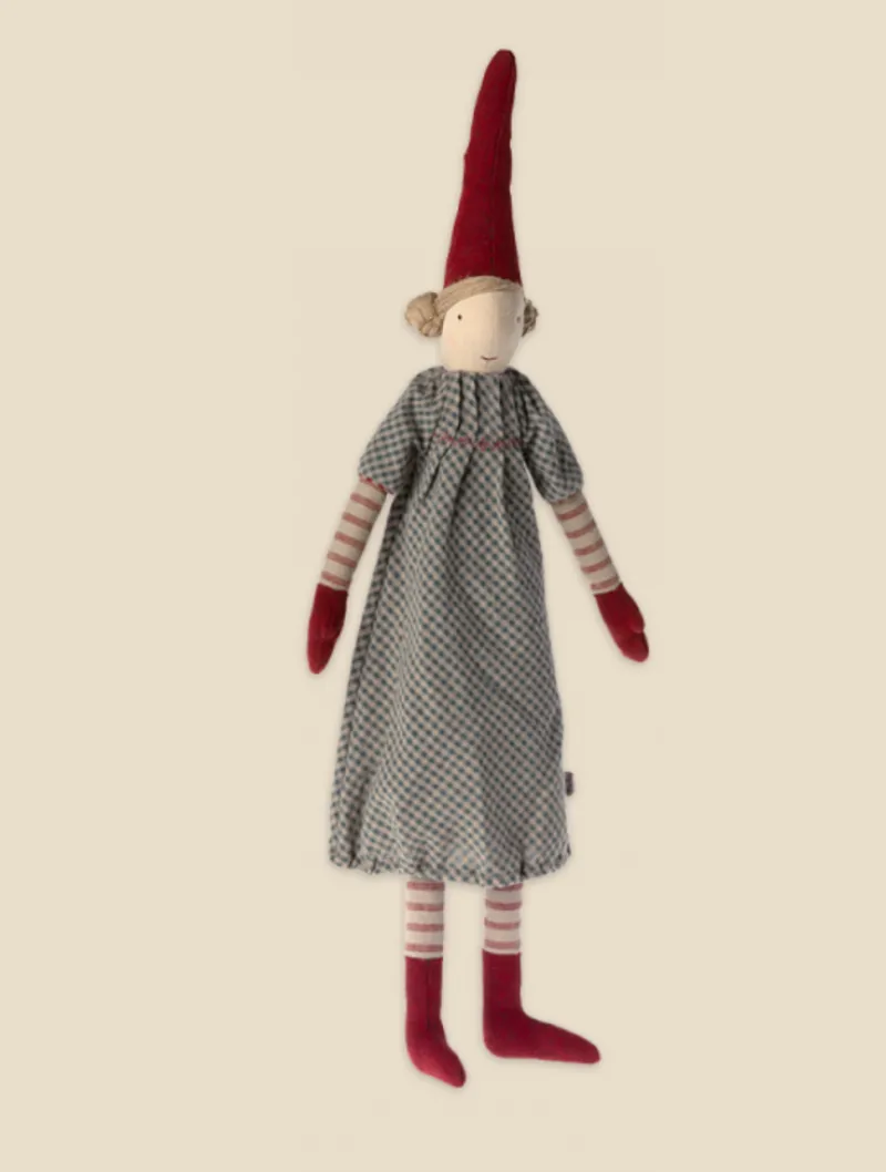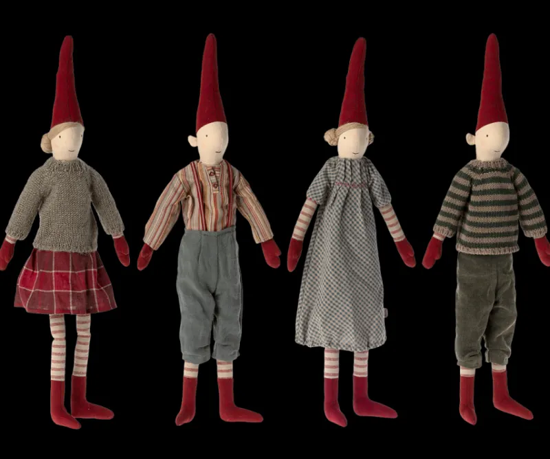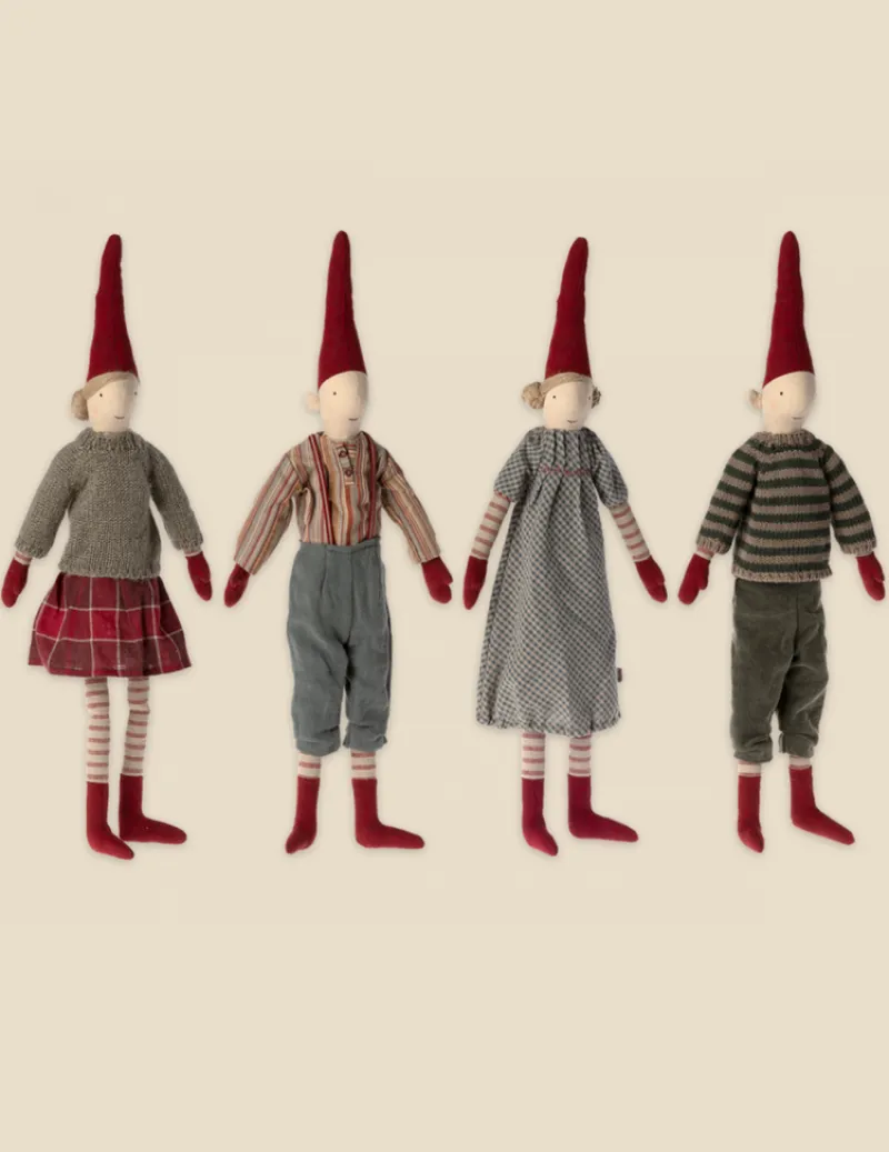 Pixies size 3 – a collection of four different styles. All dressed up in beautiful Christmas clothes made of exclusive materials. They are adorable in any Christmas decoration and can be mixed and matched across sizes and collections.