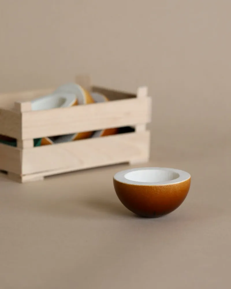 A realistic half coconut that looks good enough to eat! Children love to imitate what adults do, whether it is shopping, cooking, or sitting down to eat. The miniature food by Erzi will become an integral part of playtime, encouraging hours of house and shop fun. Great toys to stimulate young imaginations! Handcrafted in Germany of beechwood.