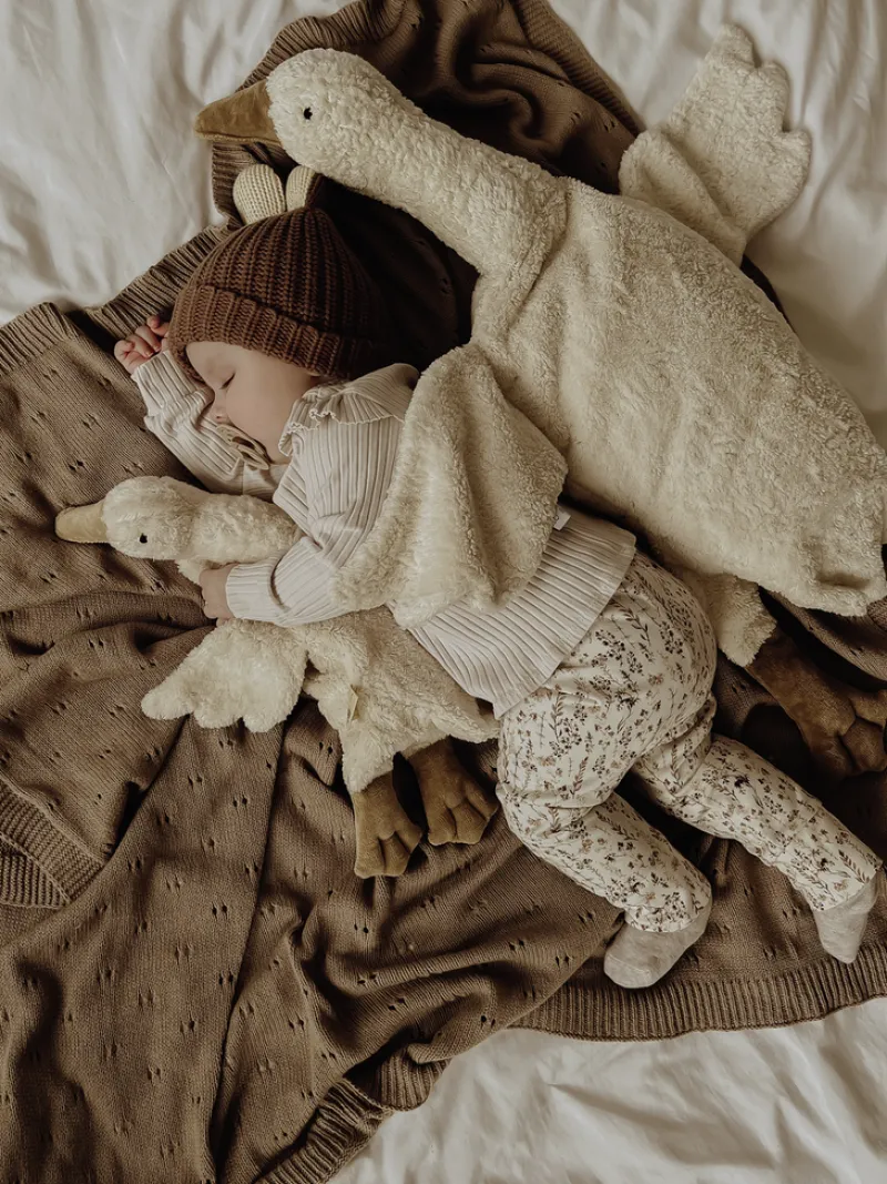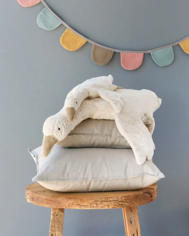 Handmade in Germany by Senger Naturwelt, this cuddly Goose doubles as a gentle warming pillow. The head and feet are filled with lamb wool and the outer layer is made with organically grown cotton. The tummy features a removable bag filled with natural spelt or grape seeds. The bag can be warmed up in the oven at low temperature (do not microwave) or put it in the freezer to cool special parts of your body.