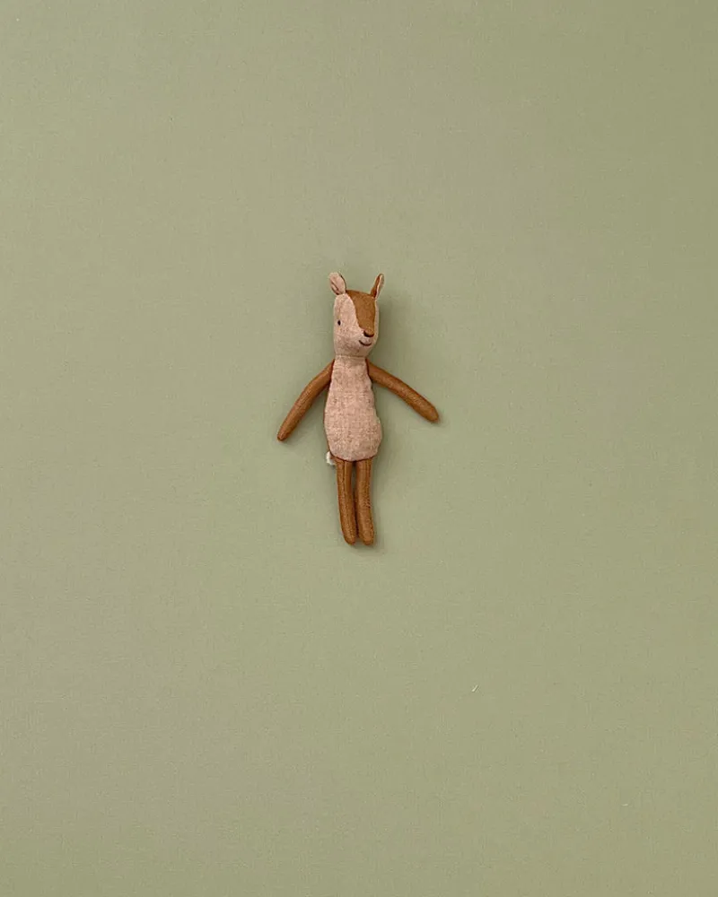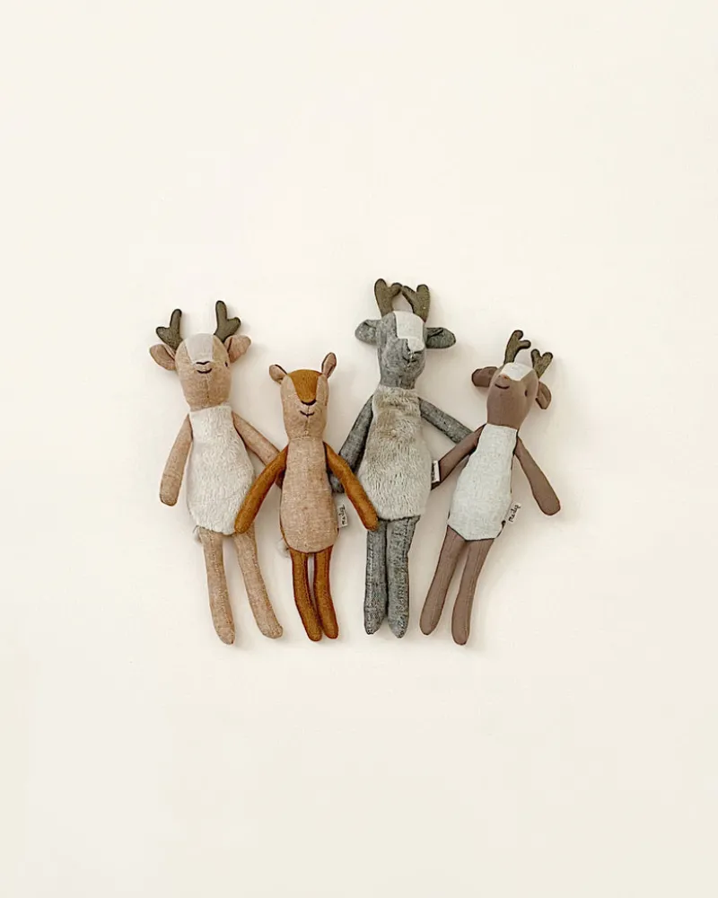 A sweet and adorable deer mother. Her light caramel fur is the same material as little sister’s belly, which is a beautiful and cozy linen fabric. Deer mother’s furry belly is so soft, and her tail is too!
