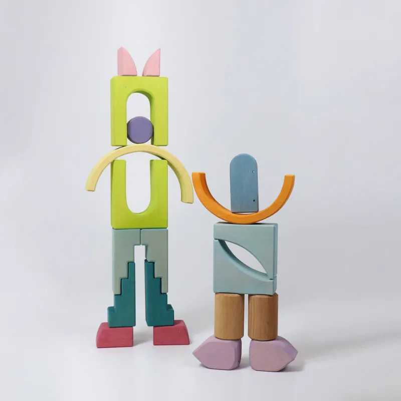 The pastel airy tones of the Building World Cloud Play give the solid wood a delicate lightness. The building materials come in a wide variety of shapes allowing imaginative free building and will complement the GRIMM’S assortment with their wonderful details, such as flower-like curves, asymmetrical edges and a mountable, movable door. Building Worlds come in a handy frame and are just waiting to burst it with the imagination of a child. They are practical small Building Sets promoting exceptional small Play Worlds. Perfectly incomplete, they invite you to add your imagination and create new worlds.