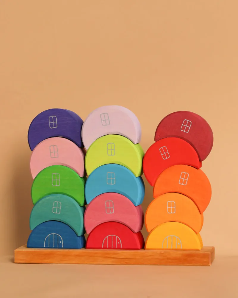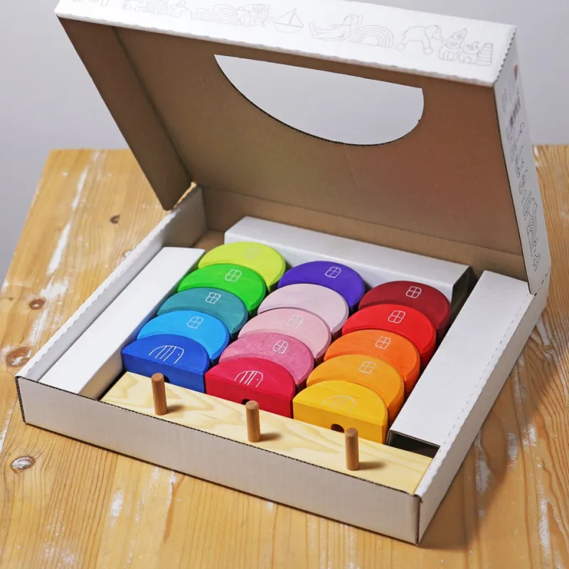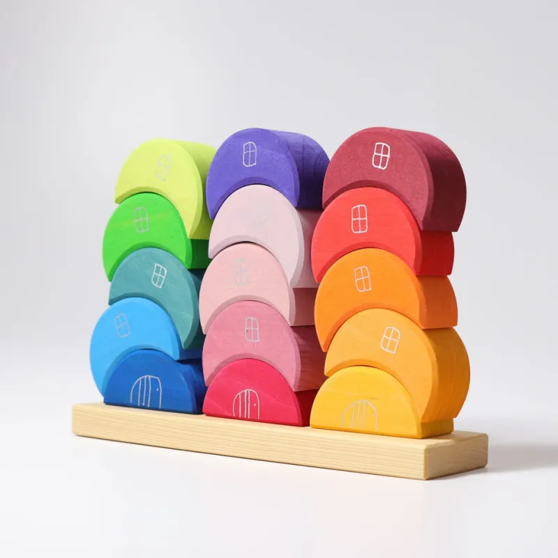 Not only sort and stack forms and colours but also build leaning funny houses and towers or lay animals or images. While building, the eye-hand coordination is stimulated and fine motor skills are trained.