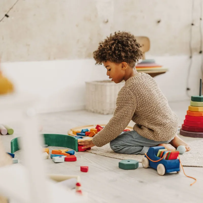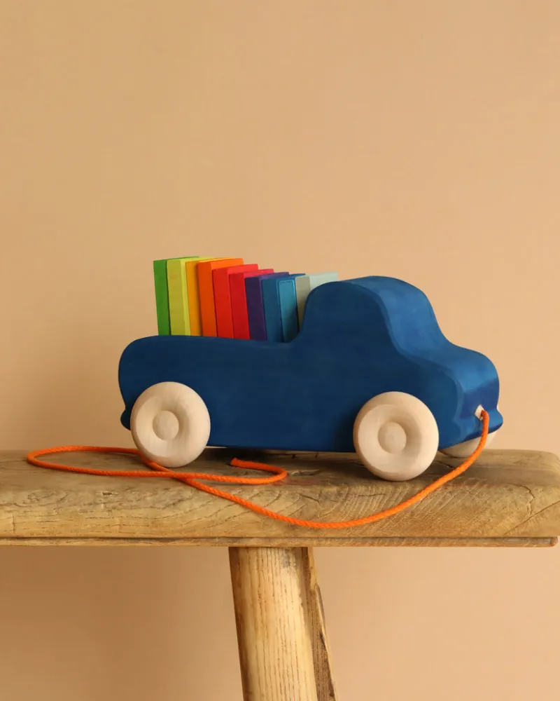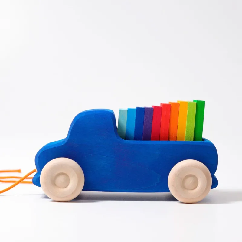 Truck Pull Toy with 10 rainbow colored charts.Details:Recommended age: 1+Length: 8.66 in Materials: lime wood, non-toxic…