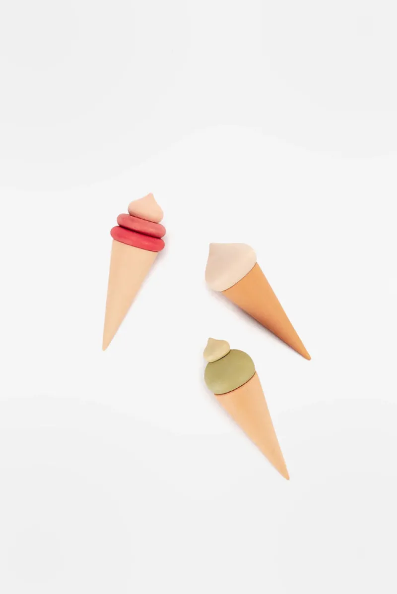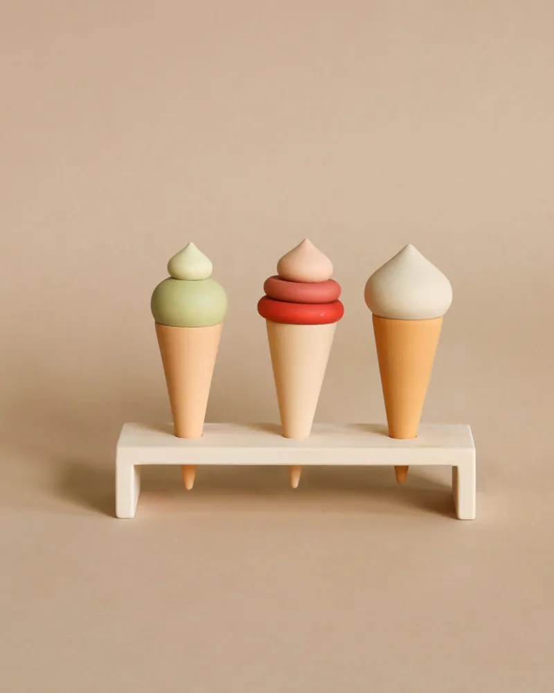 The set includes a stand, 3 ice cream cones.