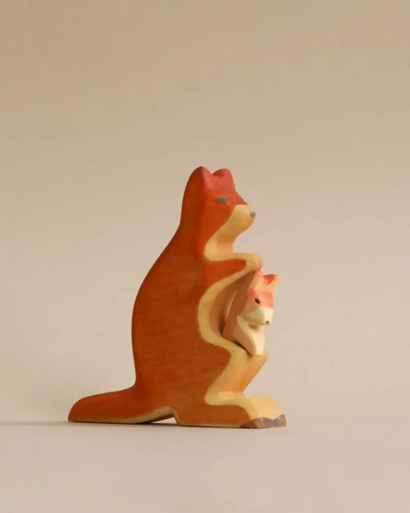The beautiful figures are made by a small business in the country Georgia, which has been producing high-quality and educationally valuable wooden toys since 1997. With much love and dedication, toys that capture the soul of animals and people have been produced there for over 35 years. Only local woods of the highest quality are used. The edges are rounded and finely sanded in several steps so that they are pleasant and soft to the touch. Finally, they are painted with natural dyes (Biofa) and finally polished with high-quality oil. The workshop is located in a small community with fair pay and a good and friendly working atmosphere. This is how sustainable toys are created that are loved and passed on from generation to generation. Each toy is simple enough to inspire imaginative play, but accurate enough to be realistic. In this way, children’s sense of beauty and imagination is encouraged.