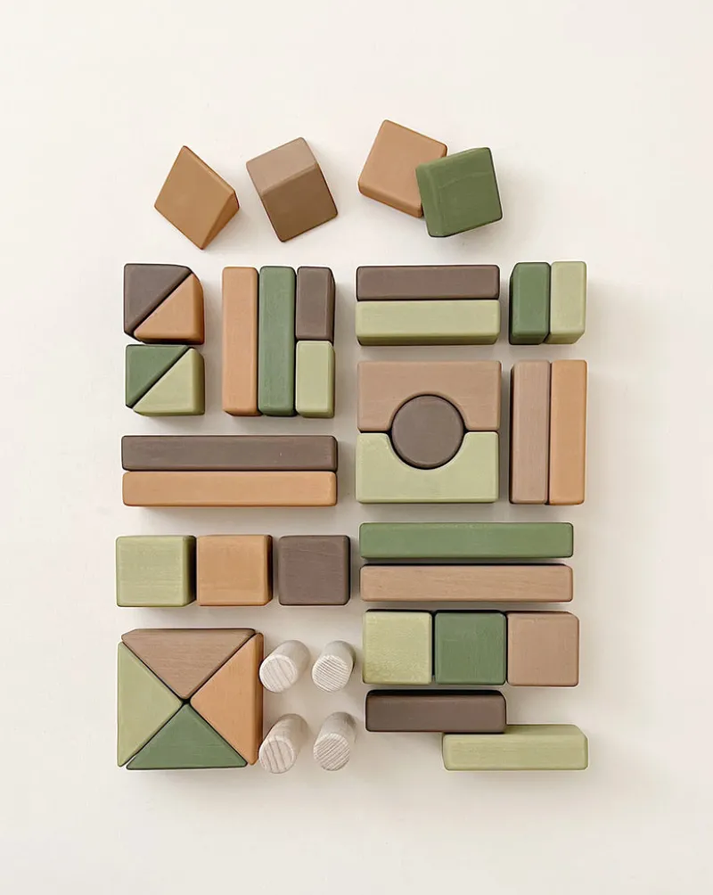 Handmade from linden wood and water-based non-toxic paint, this block set features 39 pieces. Building blocks are a great tool for helping little one develop their fine motor skills and creativity.