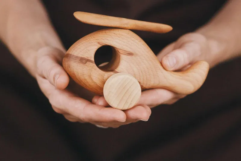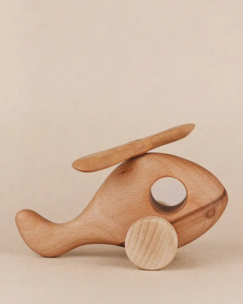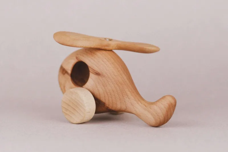 Wooden helicopter, handmade with beech and maple wood. Each piece is coated with natural linseed oil for durability.