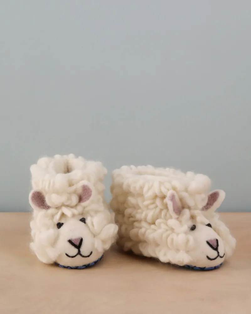 Handmade in Nepal, by artisan women who shape these slippers from wool, water and soap. The bottom of the slippers are made of suede (color:blue).