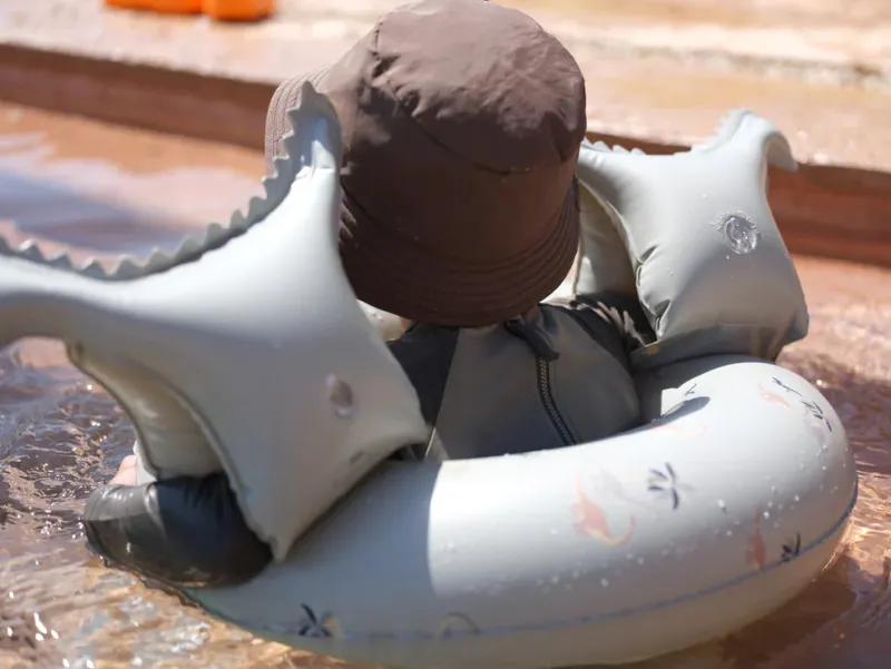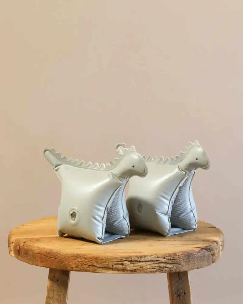 WILL NOT PROTECT AGAINST DROWNING. USE ONLY UNDER CONSTANT ADULT SUPERVISION. THIS IS NOT A LIFESAVING DEVICE. ALWAYS FULLY INFLATE ALL AIR CHAMBERS. ALL COMPONENTS SHALL BE WORN. TO BE WORN ON THE UPPER ARM ONLY.