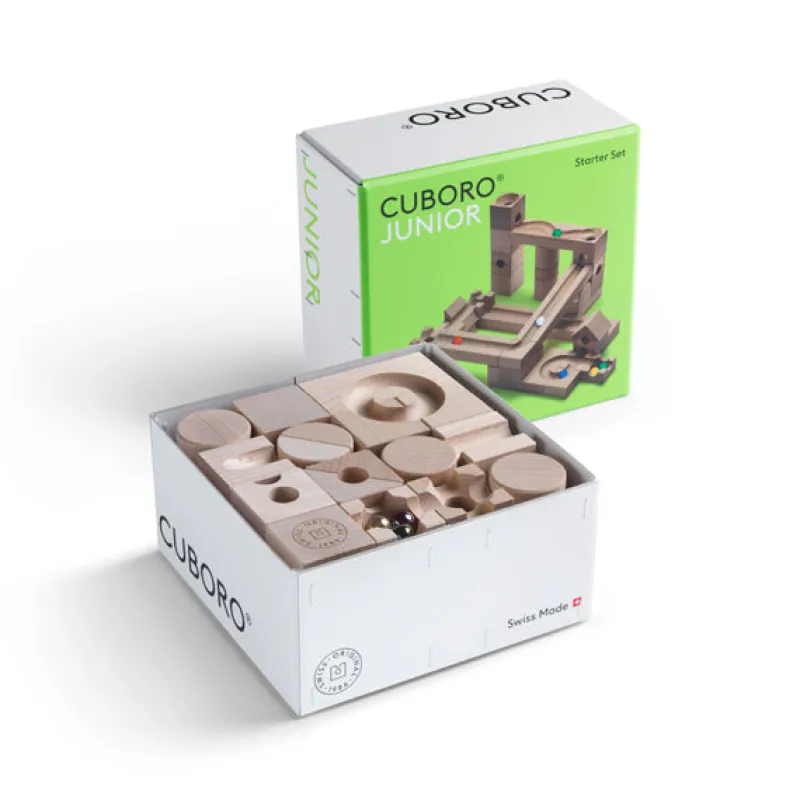 JUNIOR is the ideal introduction to the fascinating world of CUBORO. Use rails and cubes to create original structures and your first exciting marble runs. With further CUBORO Sets you combine the JUNIOR elements step by step to larger track systems. Extra Sets expand the Starter Sets and offer additional fun.