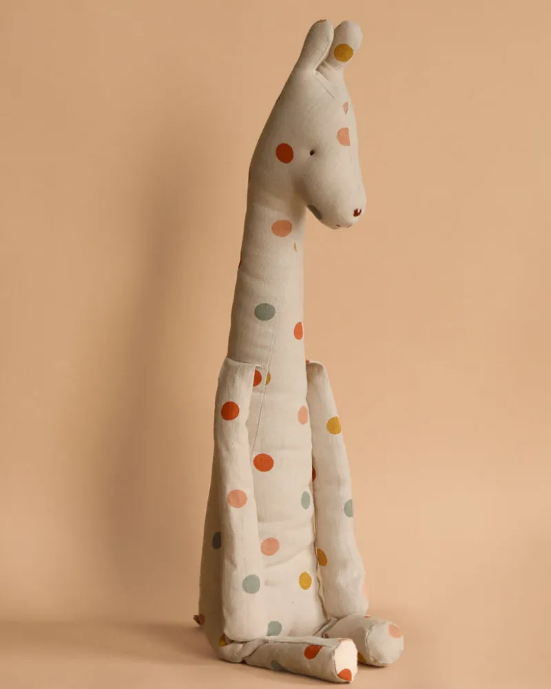 Our new safari friend, Medium Giraffe, is multi-dotted with a spunky and unique personality and a friendly face. They have a very long giraffe body with long arms to match. Their floppy arms make them so fun to play with and perfect for giving hugs. They have an adorable little tail to match their short legs and are weighted on the bottom so that they can sit next to you or lean against your bed.