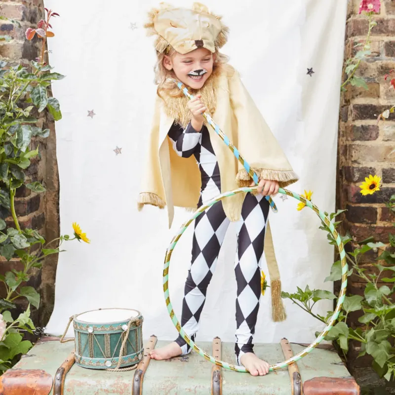 Roar! Dressing up as the king of the jungle will be fantastic fun. Our sensational lion cape and headdress dress up kit is really special! The cape features gold fringing, embroidered paws and a fabulous swishy tail. The headdress features stitched eyes and nose, gold whiskers and gold glitter elastic with a hook and loop fastener.