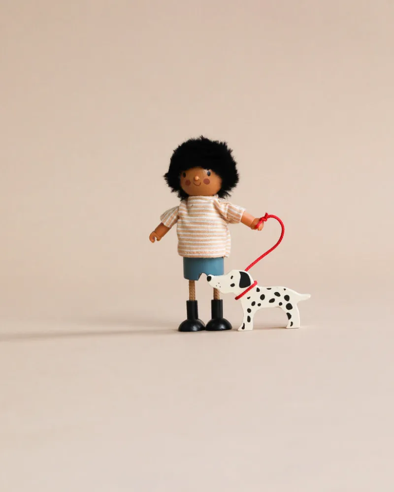 Mr. Forrester has a friendly Dalmatian dog. Made from solid wood with pretty knitted and jersey fabrics. Scaled for wooden dolls houses.