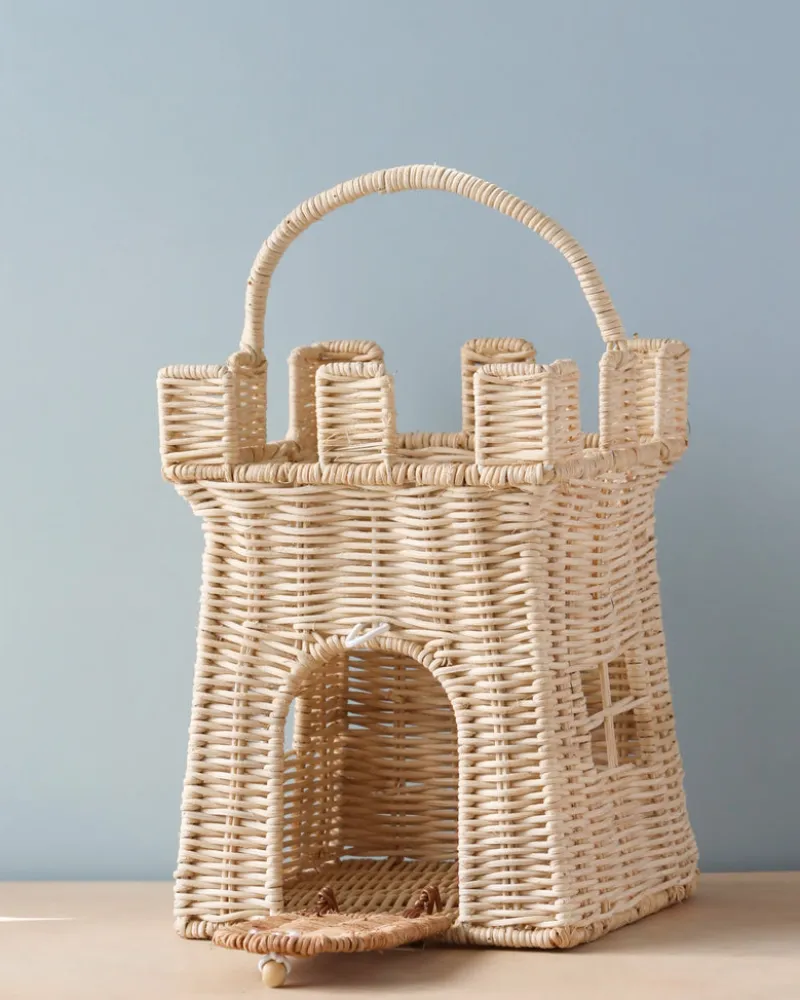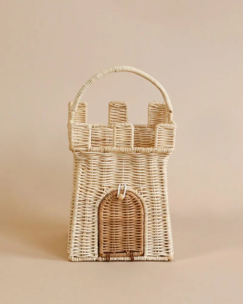 This 100% handwoven Castle is complete with turrets, a handle and a contrast rattan drawbridge that opens and closes with a little wooden button and loop for all those Prince and Princesses that might just visit!