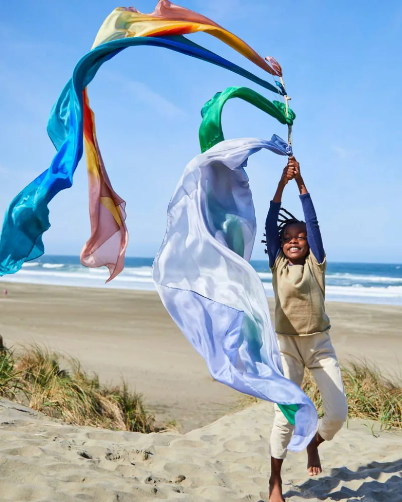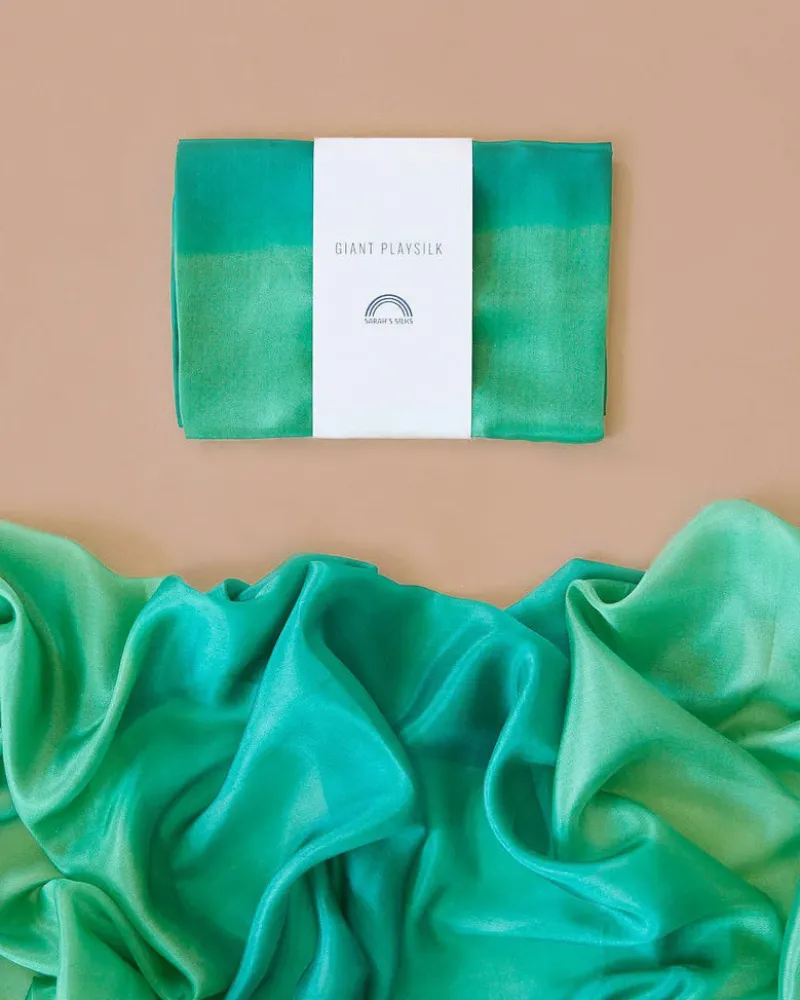 Giant Playsilks measure 70 x 35 inches – ideal for parachute play, draping as a canopy over a bed, a roof for a play stand, fort building, or as a backdrop for puppet shows. Pairs great with our Playclips!Why Children LOVE Giant Playsilks:Giant Playsilks are inspiring, magical toys that children will be drawn to play with time and time again. The simplicity and open-ended nature of Giant Playsilks tap directly into the child’s creative potential. * Open-ended play with Giant Playsilks allows children to express their imagination and support their independence. * Nourishing the senses with Giant Playsilks gives the child an amazing tactile experience.Sarah’s Silks inspires imaginative play in children through open-ended toys made from natural materials. Drawing from the philosophies of Waldorf and Montessori education and her own childhood of imaginative play, Sarah has been designing each toy with care for 29 years.