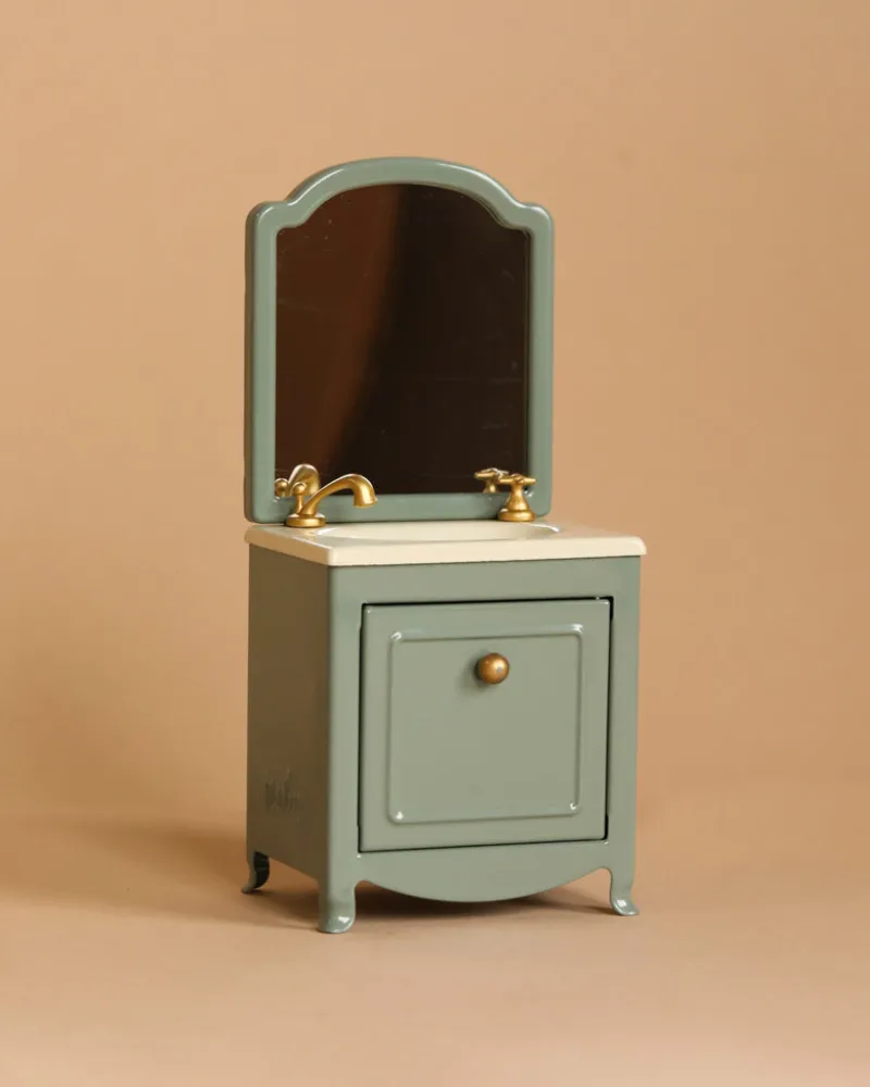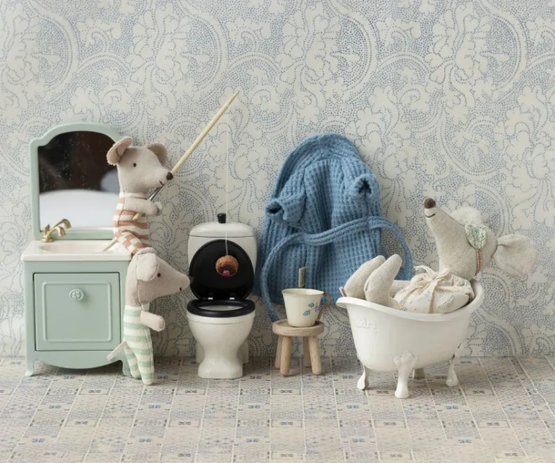 A very essential item for the the bathroom in any mouse house. It has a small closet under the sink and of course a mirror as well. Add the Maileg toilet and bathtub to extent the play.