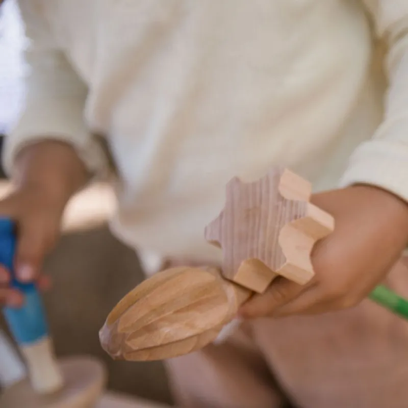 This set contains 6 different tools, each in a unique size, shape and color. They are a great addition to all sorts of sensory play. Combines well with the Pots play set.