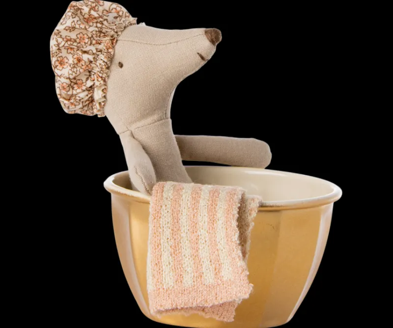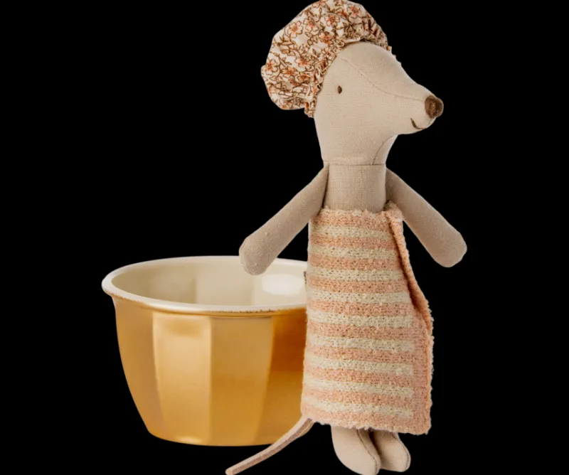 Mouse is 5″ tall and fits Micro clothing and furniture.