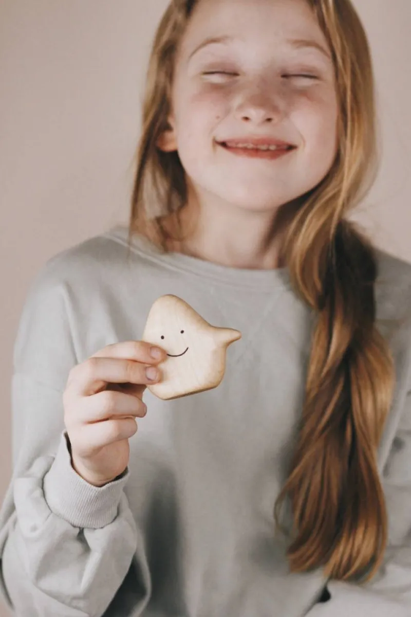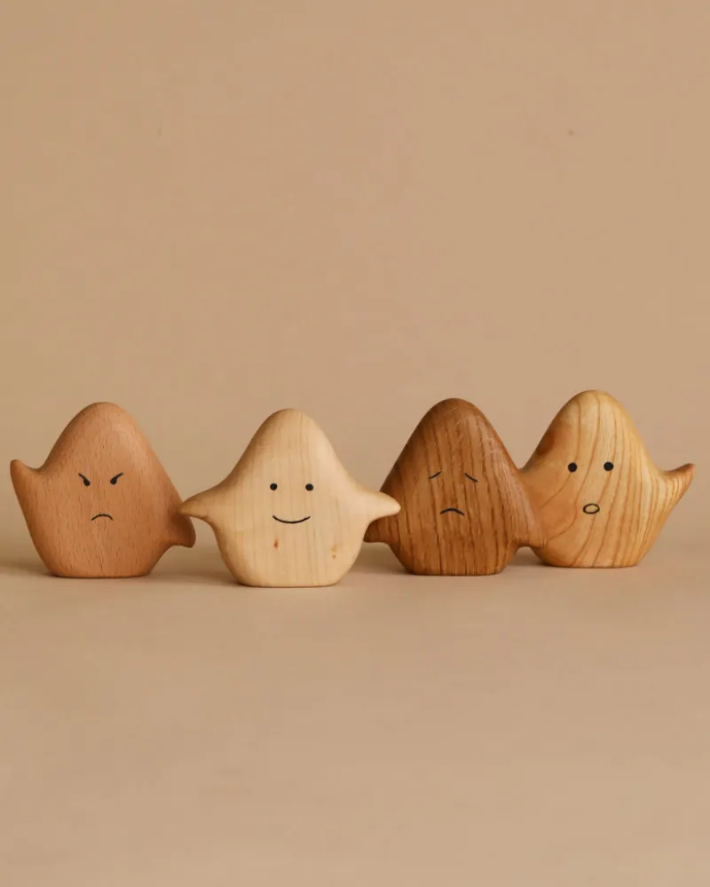 Four wooden ghost figures to teach little ones about basic emotions. Each pieces is carefully sanded to be ultra smooth and coated with natural linseed oil. This set come in a cotton bag.
