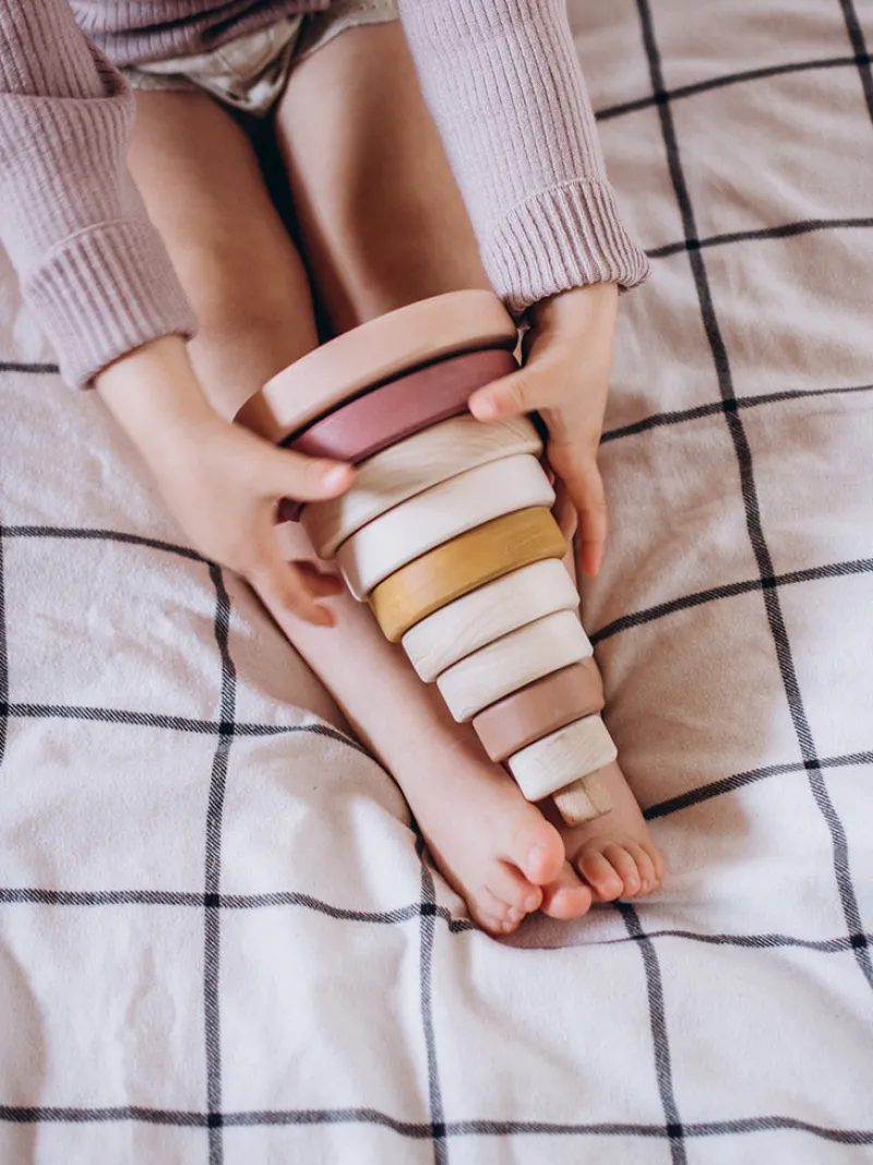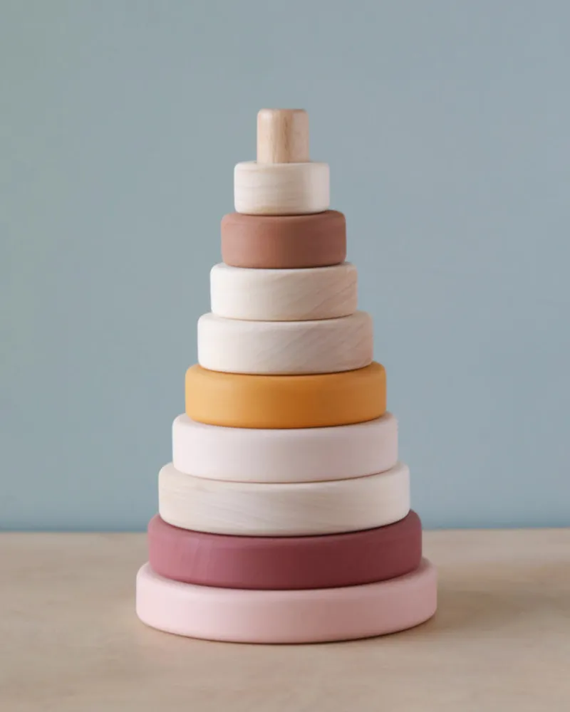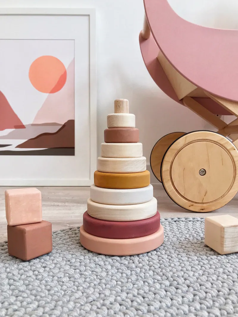 Handmade by Sabo Concept in Ukraine and painted with non-toxic, water-based paint. This stacking toy is great for hand-eye coordination.