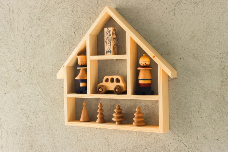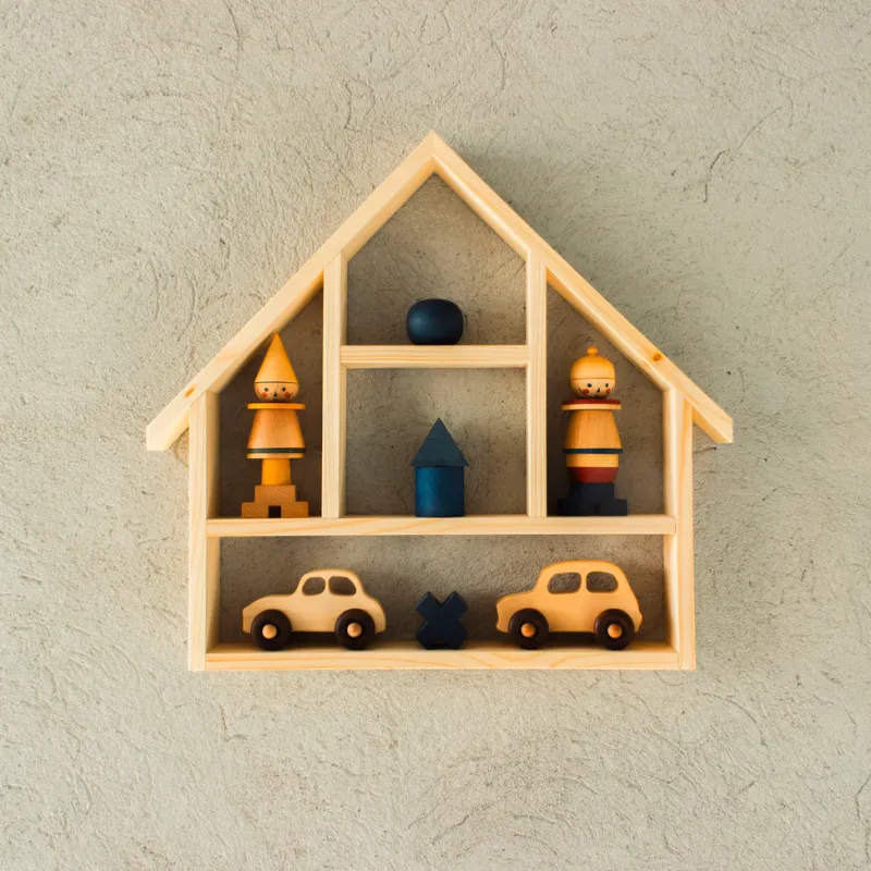 Shelves for the children’s room have been designed to meet the kids’ needs. Shelves for books, treasures, boxes of crayons, bottle caps, beads, and magic buttons.