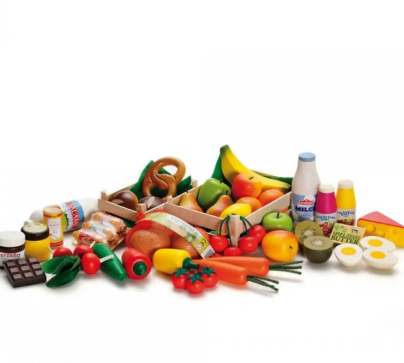 A big box of play food to set your pretend play store and kitchen.