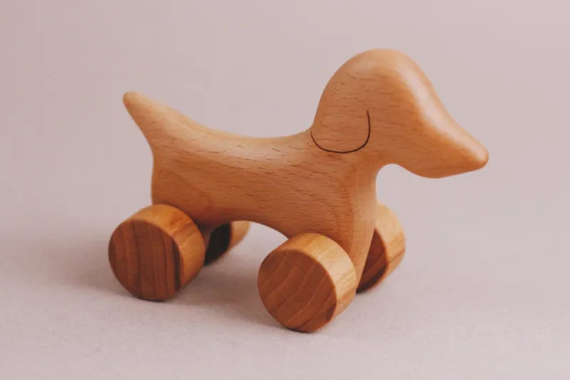 Toys with wheels have always been loved among kids. This giraffe push toy is handcrafted from maple and beech wood and coated with linseed oil.