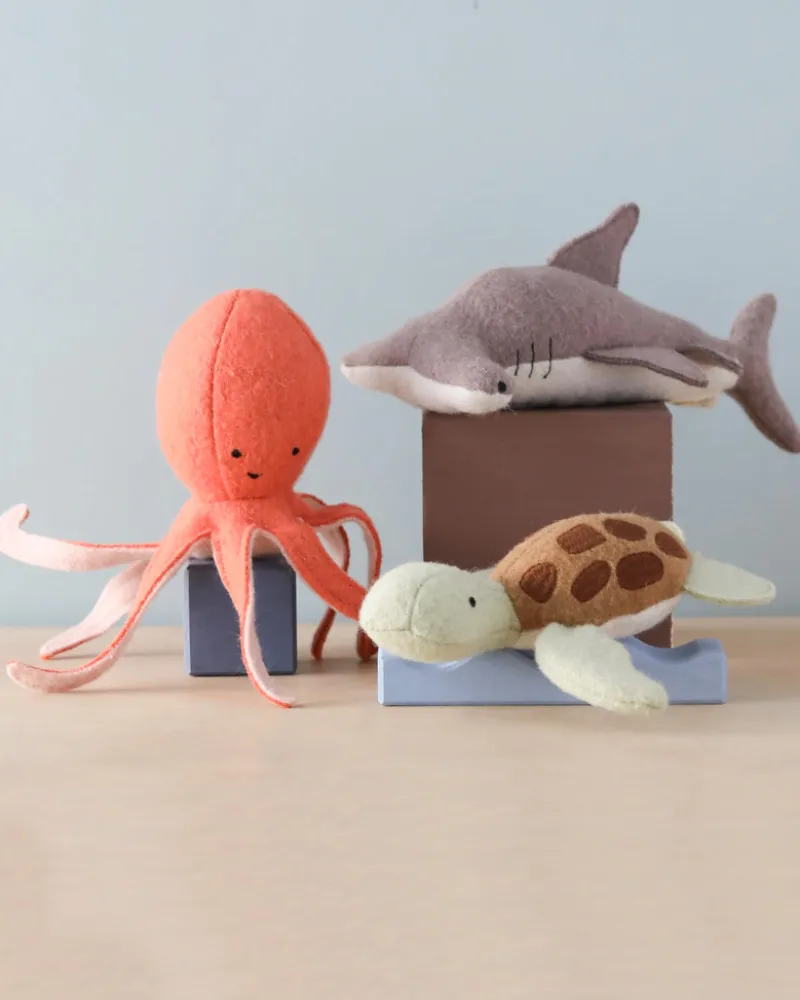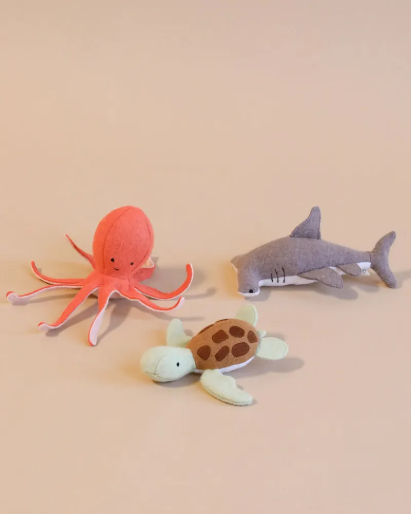 Handmade from a soft wool blend with embroidered features, these three Marine friends are the perfect size for small hands and are wonderful prompts for hours of imaginative play.