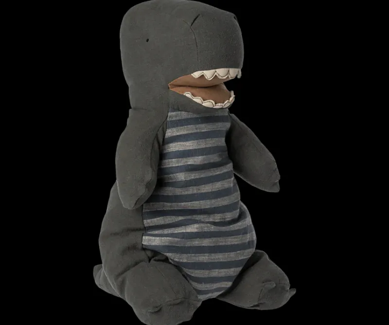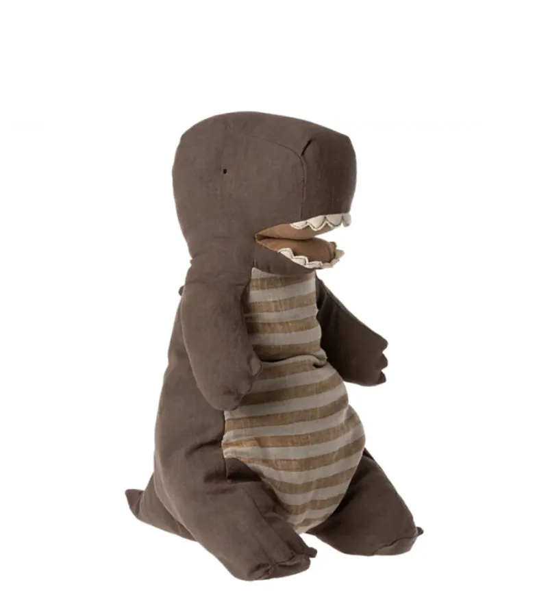 Look at this funny friend! A large Gantosaurus with big teeth has arrived and is ready to play with all of us. It is made in a soft mix of ramie and cotton, the striped stomach is made in a very nice blend of linen and cotton.
