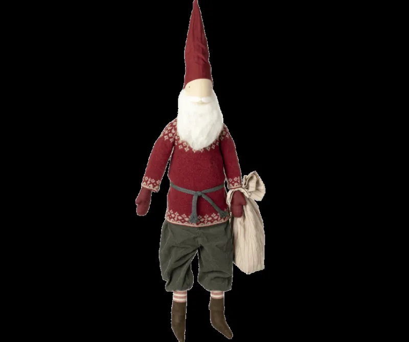 This large Santa will be a must-have in every home. He wears a beautiful lambswool sweater with a belt and casual pants. In his hand, he carries a sack for all the presents.