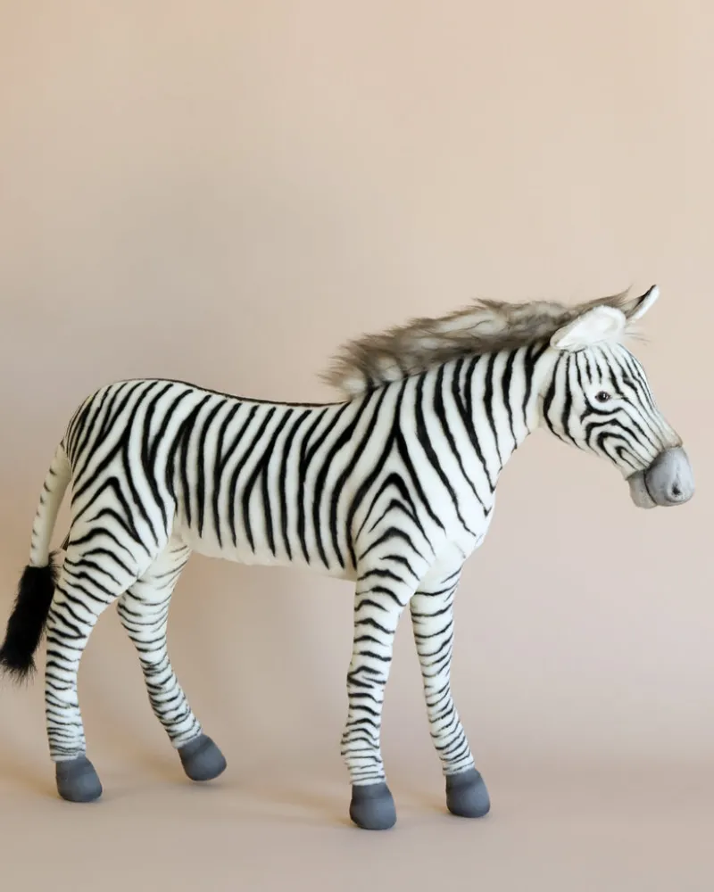 Artisans hand sew the animals “inside out”, an old world tradition that results in the mininization of seams, and their bodies are carefully “sculpted” to create “musculature” and “features” like movement in a walking or sitting position that are unique to each creature. On average, there are 42 separate pieces required to make each animal, that must be combined by a team of truly creative artists to create the distinctly realistic features that characterize HANSA animals. (Some animals have as many as 240 different parts!) Each animal is individually hand sewn, to give it a unique “personality”, there are more than 860 different fabrics and man-made furs from which the “coat” and “hides” are made, along with over 6000 sets of different eyes, whiskers, claws, noses, and related accessories allocated for creating these wonderful plush animals. Stuffing emphasizes careful attention to the placement of the highest quality man-made materials.