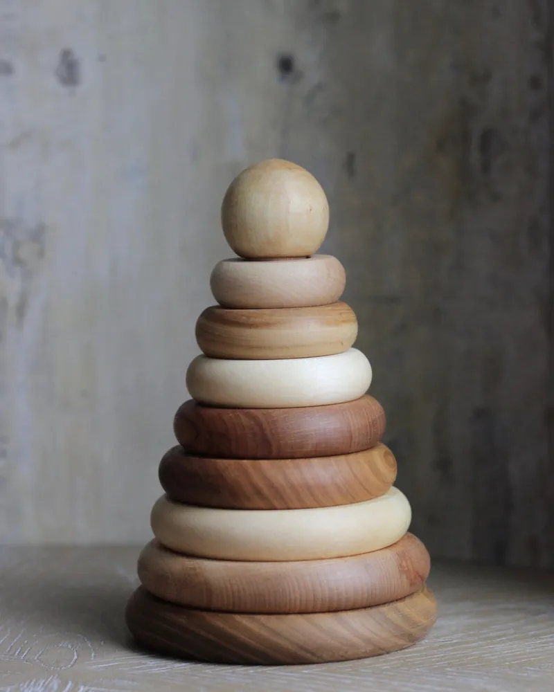 From the biggest to the smallest, from the smallest to the biggest! Or maybe the smallest one in the middle? So many possibilities! Perfectly round they roll around… Mix them, match, combine and play! So soft from beeswax and botanical oils, delightful colours of various kinds of wood, so safe – from nature!