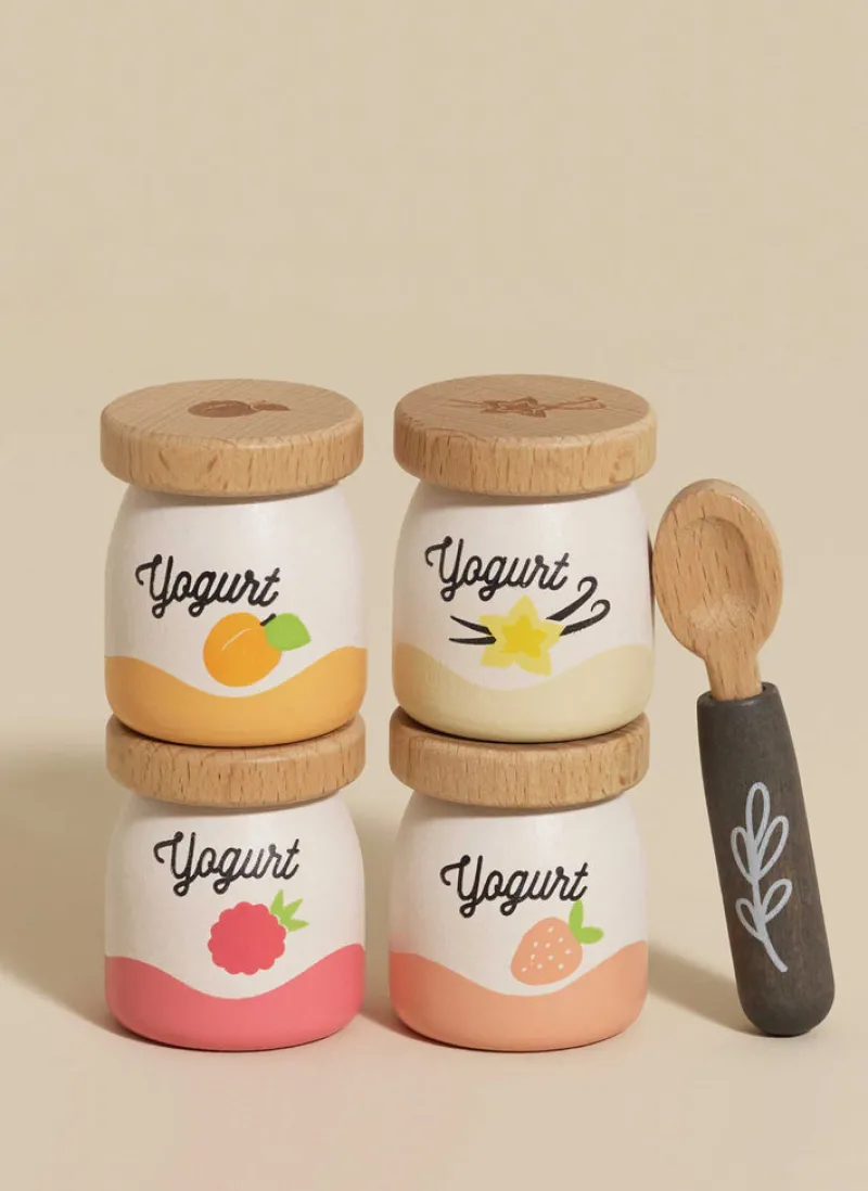 This is the perfect addition to any little one’s pantry! The 5-piece set features a tempting assortment of 4 deliciously flavour pots, including apricot, vanilla, raspberry and strawberry, complete with a spoon. Each pot’s natural wood lid is exquisitely engraved with intricate details, adding a touch of realism to your child’s imaginative play. This set encourages interactive role play and allows your little chef to serve up imaginary yogurts to their hearts’ content. Designed with natural wood tones and soft pastel colors to help develop cognitive skills, dexterity and hand-eye coordination. -Safety tested for ages 2 years+-Made of FSC®-certified wood-Plastic-free toy -Decorated with non-toxic, water-based resistant paints