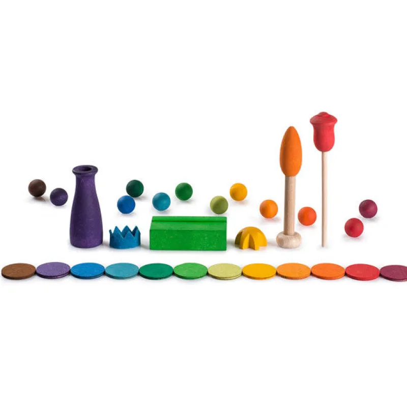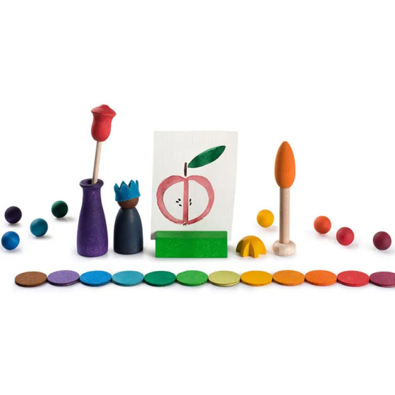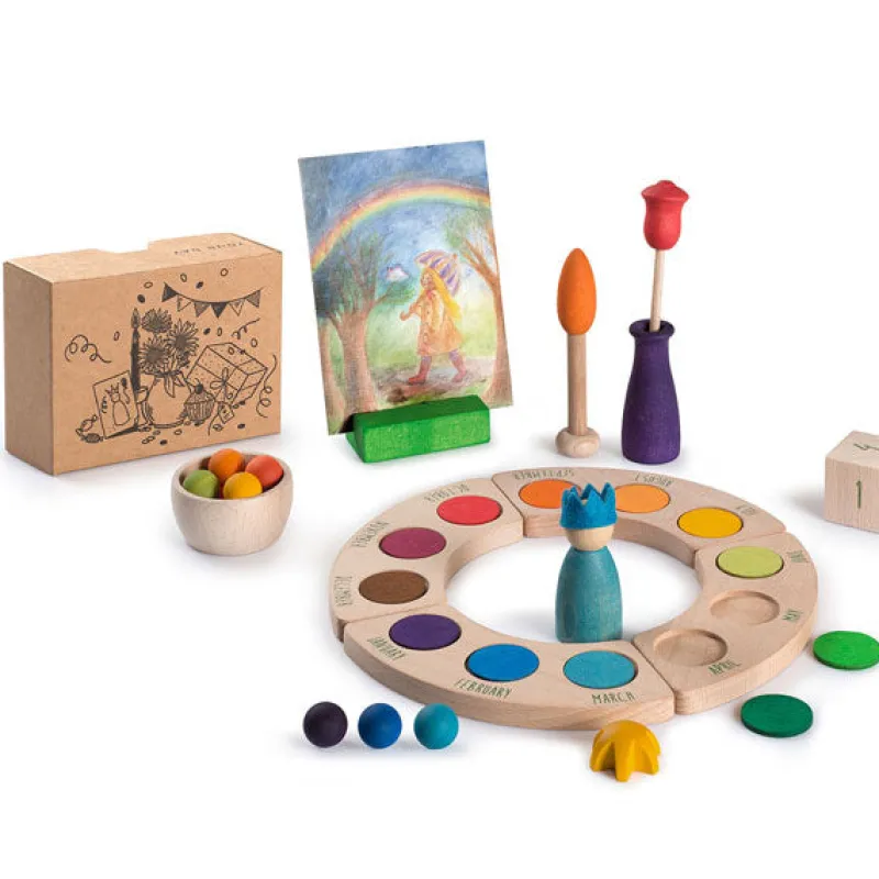 Today is your day! This set includes beautiful pieces to celebrate: a candle, a star, a crown, some party decorations… This set can be combined with Grapat’s Perpetual Calendar and helps with understanding the abstract concept of time. Your Day includes 31 pieces in wood and felt of different sizes, shapes, and colors.